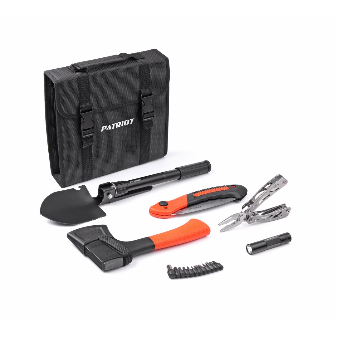 Набор универсальный Patriot KUP 6 предназначен для автомобилистов и туристов. Состав: фонарь, лопата, мультитул с битами, пила и топор.